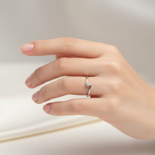 Anillo de Compromiso en Oro Blanco de 14K con Diamante Natural Corte Brillante .10 cts Diseño Cometa DJ2269