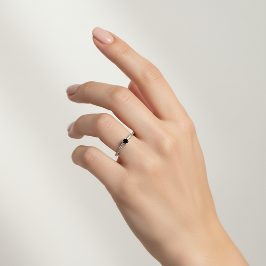 Anillo de Compromiso en Oro Blanco de 14K con Diamante Natural (.10 cts) – Modelo Estrella DJ2412