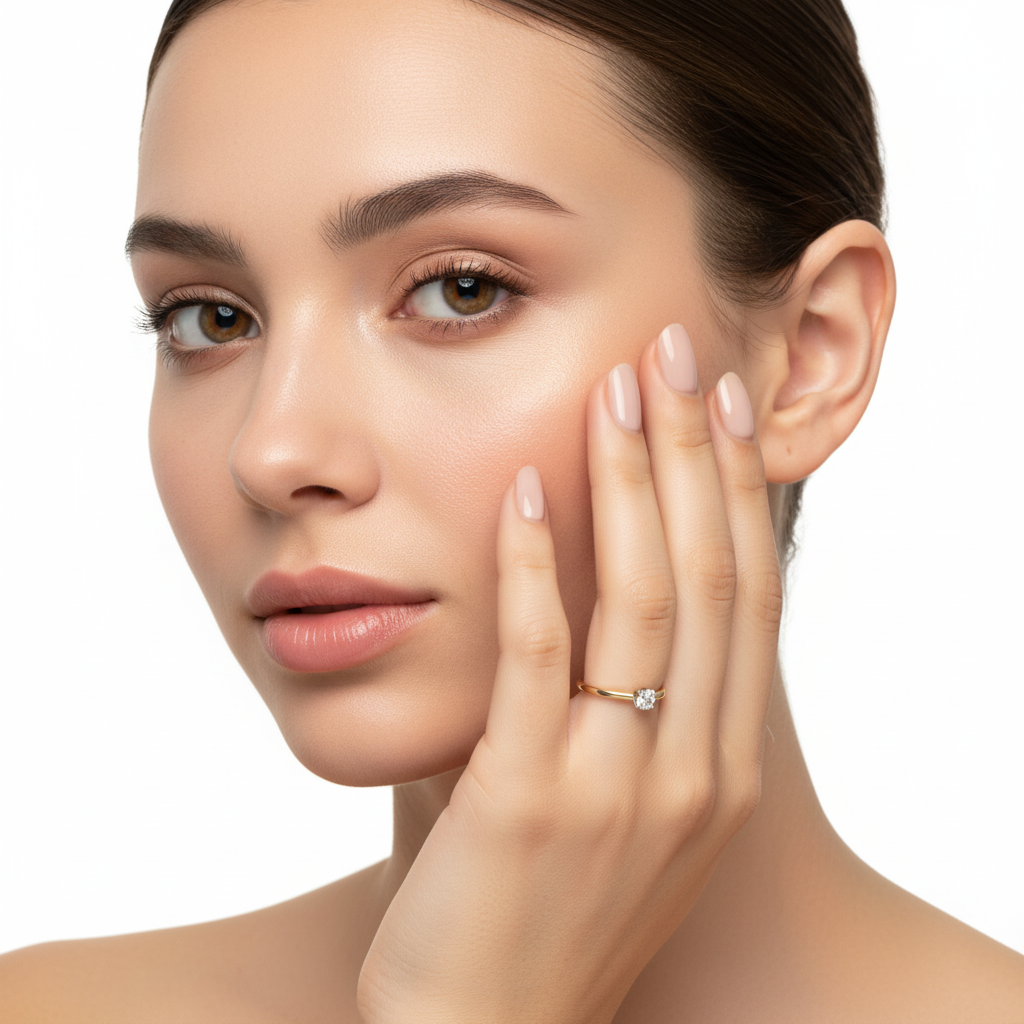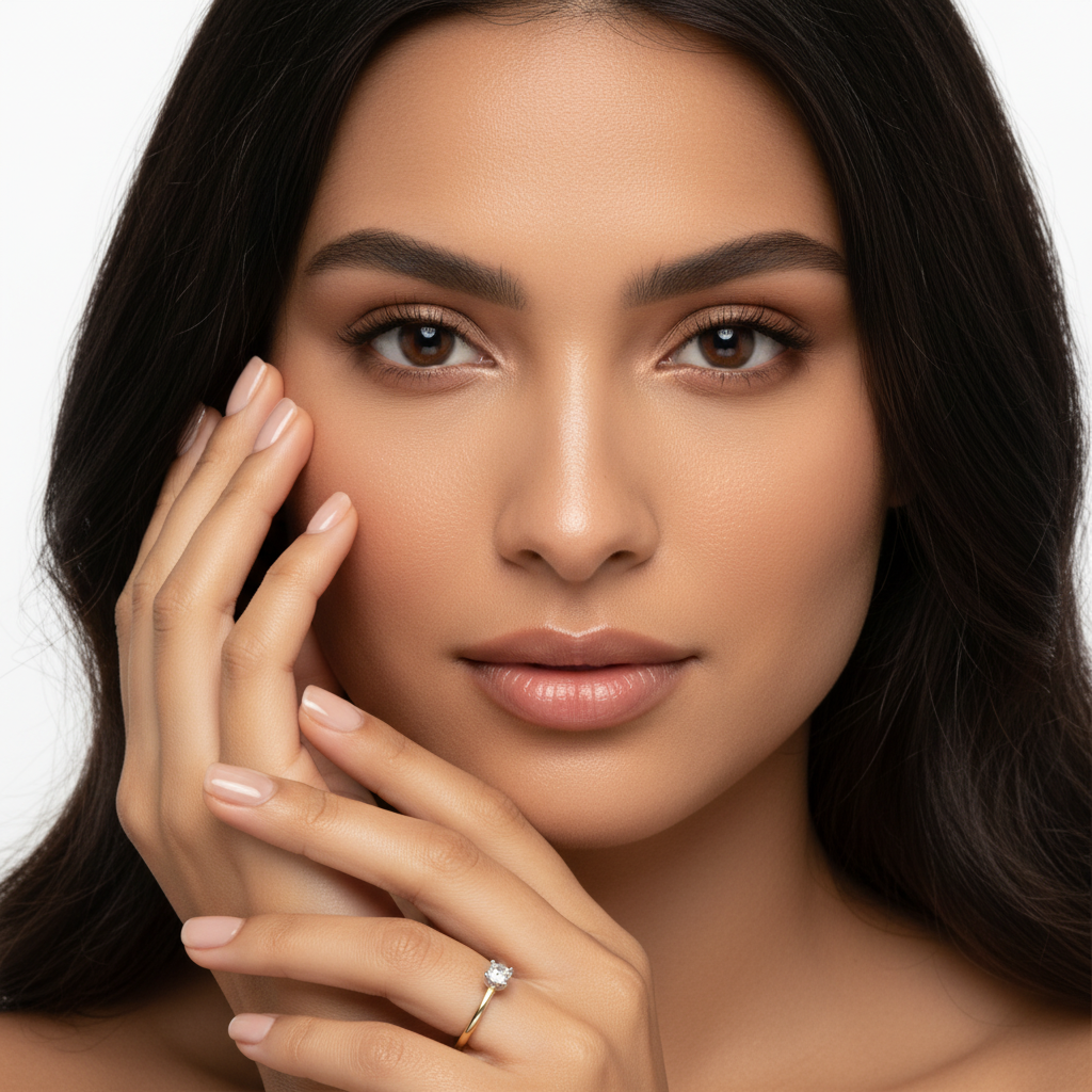 💎 Piedra central: Diamante natural, corte brillante redondo, 0.42 cts